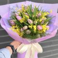 A Soft and Elegant Bouquet with Tulips and Mimosa