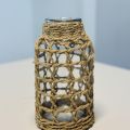 Material: Clear glass vase encased in handwoven jute rope lattice