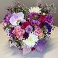 This stunning floral arrangement showcases a graceful blend of fresh flowers, thoughtfully combined to create a captivating display of beauty and harmony. The bouquet features a delicate mix of soft pastel hues and vibrant blooms, offering an elegant balance between charm and sophistication.