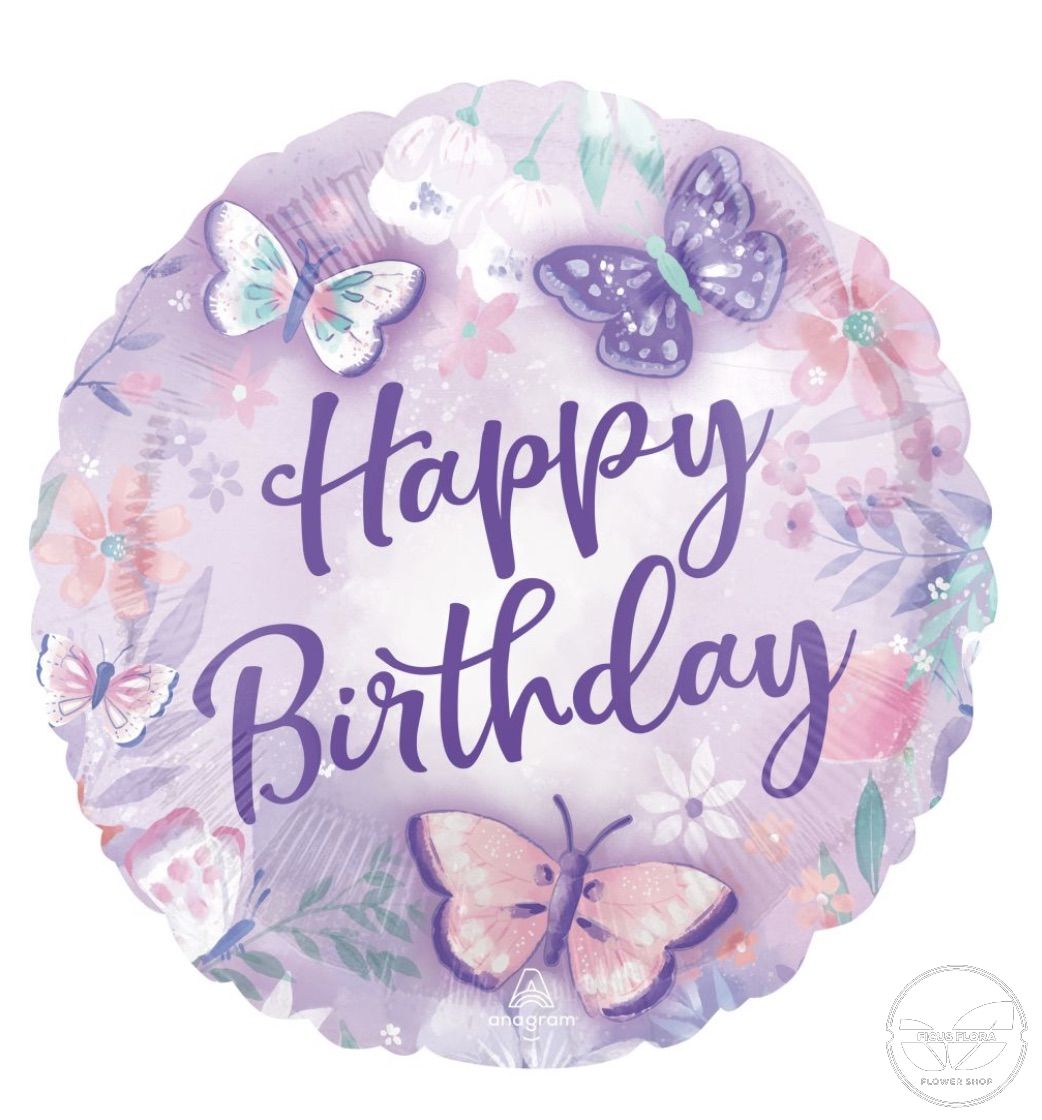 Delight someone special with this pastel butterfly “Happy Birthday” foil balloon, featuring soft lavender tones, watercolor florals, and graceful butterflies. It’s a charming way to celebrate birthdays with elegance and joy — perfect for both kids and adults!