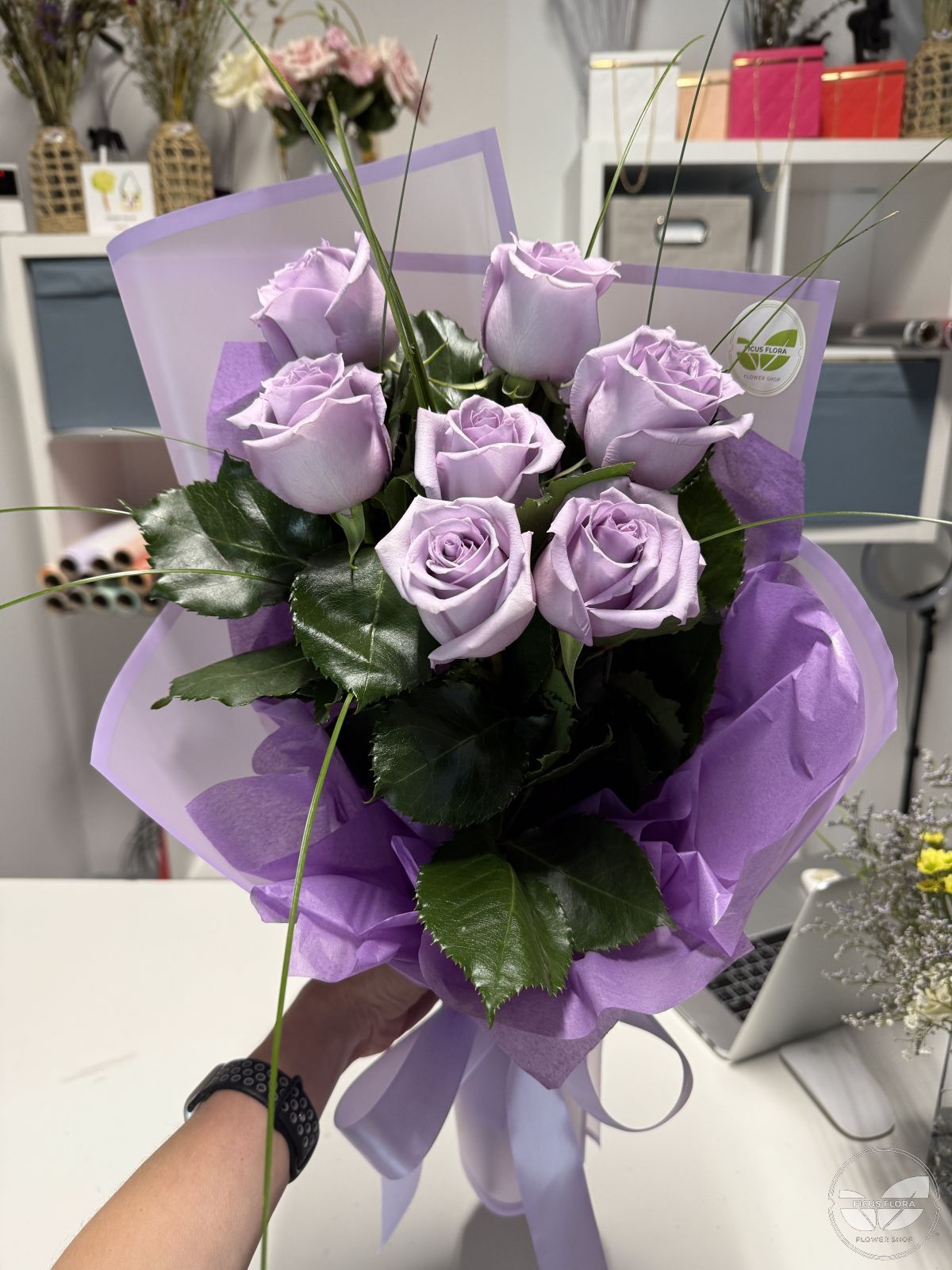 This elegant bouquet of lavender roses captures the essence of grace and serenity. Each rose blooms with a soft lilac hue, symbolizing enchantment and love at first sight. Perfect for birthdays, anniversaries, or simply to express admiration, this bouquet is wrapped in matching lilac tones for a refined and romantic presentation. Handcrafted with fresh premium roses and lush greenery by our florists in Toronto.